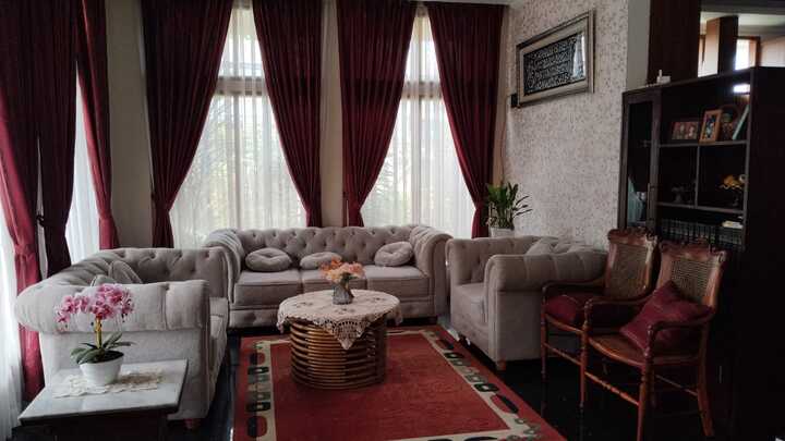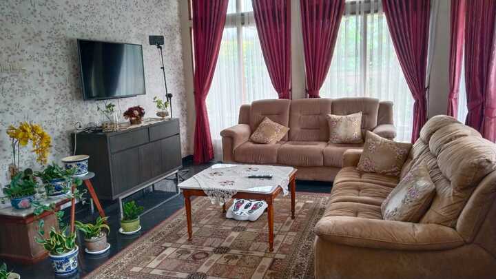 Rumah Utama : Kamar Tidur 7+1, Kamar Mandi 6, Ruang Tamu 3, Dapur 3, Ruang Keluarga, Balkon, Kolam Ikan 2