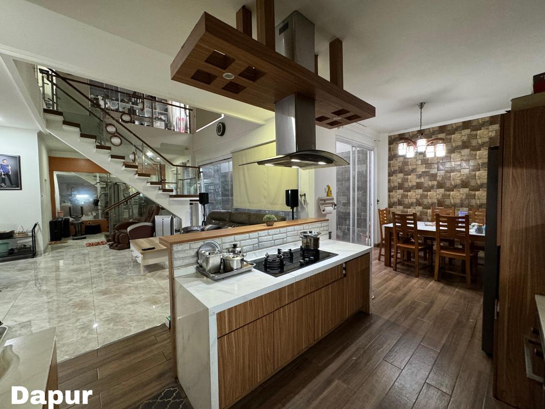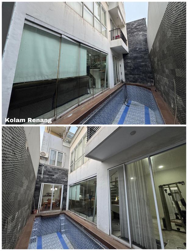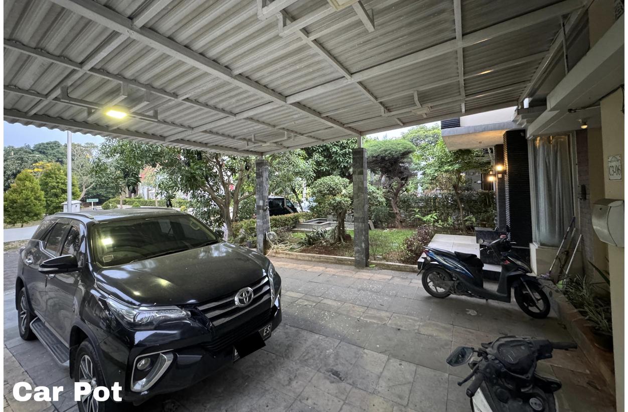 Fasilitas : Carport muat 5 mobil, Mini Swimming Pool, semi furnished : 4 Kamar Tidur set & AC, Lemari + Meja kerja, kompor tanam